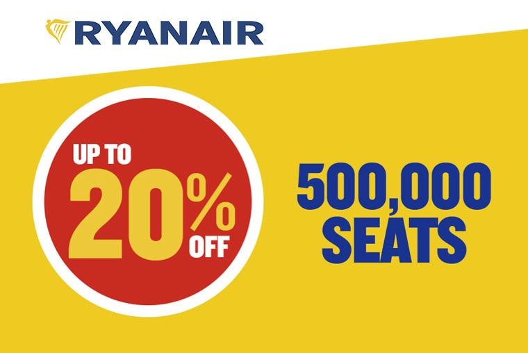 Danas do kraja dana, tačnije do 23:59 Ryanair je spremio popust do 20% na 500,000 mesta za putovanja u periodu od juna do septembra 2018. godine. Očekujte u toku dana